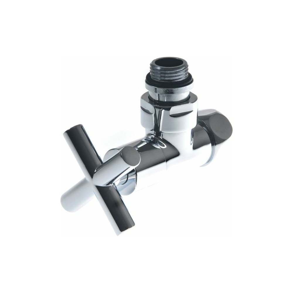 Угловой кран-вентиль SMT ручка крест, хром, 3/4"х1/2"г/ш SMT8200SCH0405 используется при установке и подключении к системе горячего водоснабжения полотенцесушителей. Вентиль представляет собой обычный кран, с помощью которого можно в любой момент перекрыть подачу воды в прибор или отрегулировать его температуру до нужного уровня. Легко подключается с помощью резьбовых соединений и не уменьшает пропускную способность.