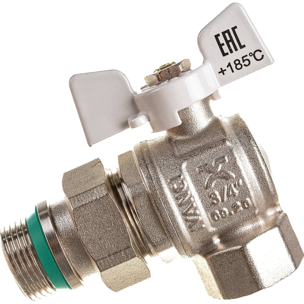 Шаровой кран IVANCI Superior угловой с разъемным соединением и стопорным кольцом, белая ручка-бабочка, вн.-на.рез.3/4" IVC.100228.N.24