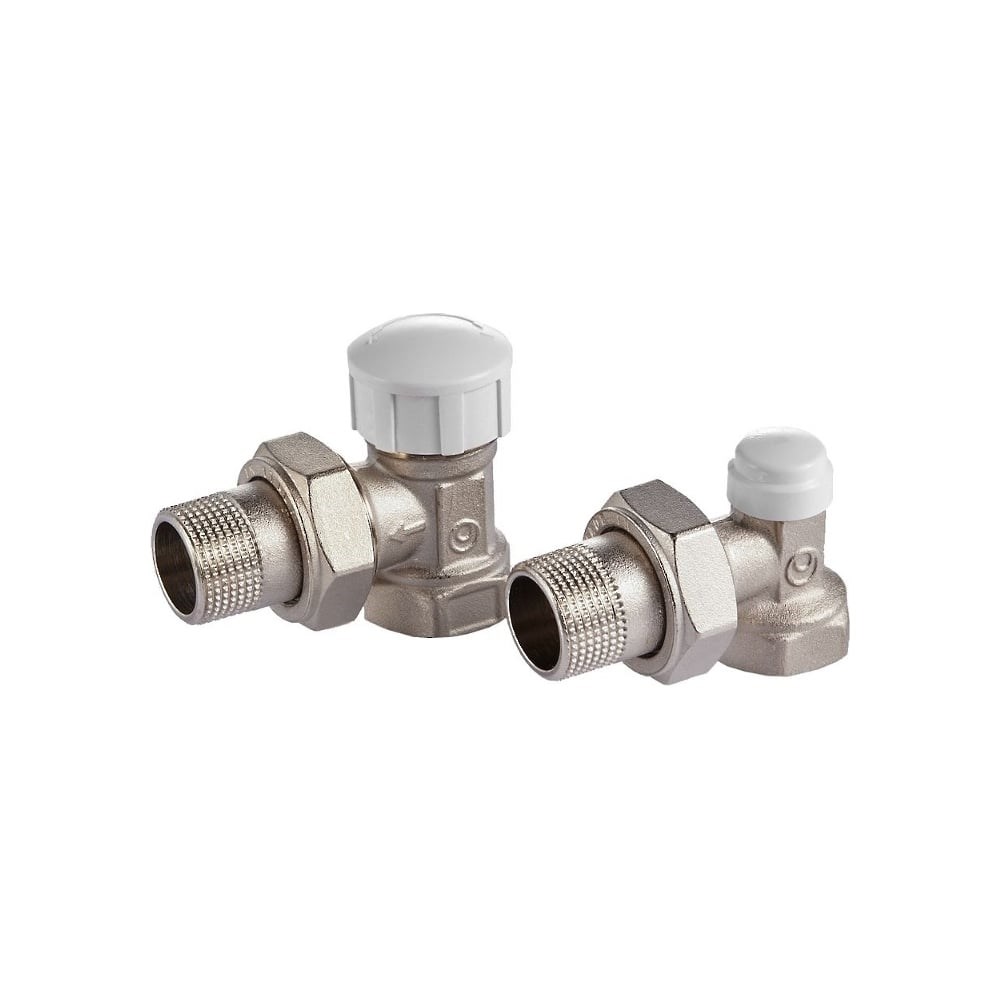 Набор термостатический Royal Thermo состоит из клапана термостатического, предназначенного для установки на вход теплоносителя в отопительный прибор и клапана запорного – для установки на выход теплоносителя из отопительного прибора. Состав комплекта: • набор термостатический прямой: клапан термостатический прямой и клапан запорный прямой; • набор термостатический угловой: клапан термостатический угловой и клапан запорный угловой: • набор термостатический осевой: клапан термостатический осевой и клапан запорный угловой. Назначение: Клапан термостатический предназначен для установки в двухтрубных насосных системах отопления. В работе с установленной термоголовкой представляет собой автоматический регулятор теплоотдачи отопительного прибора. Клапан запорный предназначен для балансировки расчетного расхода теплоносителя через отопительный прибор, а также для отключения отопительного прибора от системы отопления. Принцип работы: Регулирование потока теплоносителя в отопительный прибор осуществляется автоматически с помощью установленной термостатической головки (приобретается отдельно) в зависимости от температуры воздуха в помещении. Клапан термостатический является нормально открытым и закрывается под воздействием термостатической головки. Открывается клапан с помощью возвратной пружины, когда шток поднимается. Макс. рабочая температура - 90 °С Макс. температура теплоносителя - 110 °С Максимальное рабочее давление - 10 бар Материал уплотнителей o-ring - EPDM Мин. рабочая температура - 1 °С