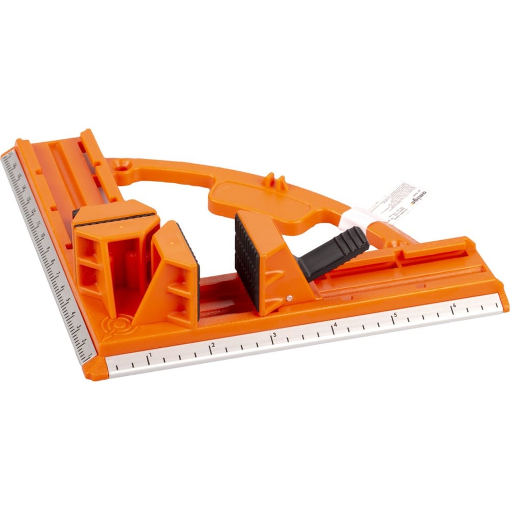 Угловой зажим Amigo 95 мм 74816 имеет корпус из армированного нейлона, линейки металл. Оснащен метрической и дюймовой шкалой для удобства измерений. Система быстрого зажима заготовок в виде эксцентрика облегчает фиксацию детали. Дополнительные характеристики: Зажим деталей разного размера под углом 90° Зажим: 95 мм