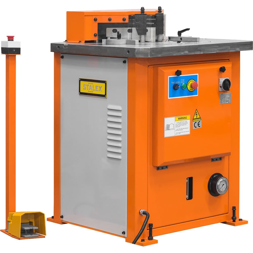 Угловысечной гидравлический станок Stalex HNM-6 372410 представляет собой высокоэффективное оборудование с гидроприводом, которое предназначается для обработки листового металла. Наличие выносного пульта управления позволяет оператору держать заготовку двумя руками, что способствует удобству эксплуатации. Тумба агрегата оснащается специальным контейнером, который служит для быстрого вывода стружки из рабочей зоны. Ножи аппарата совершают 24 реза в минуту и отличаются стойкостью к износу.