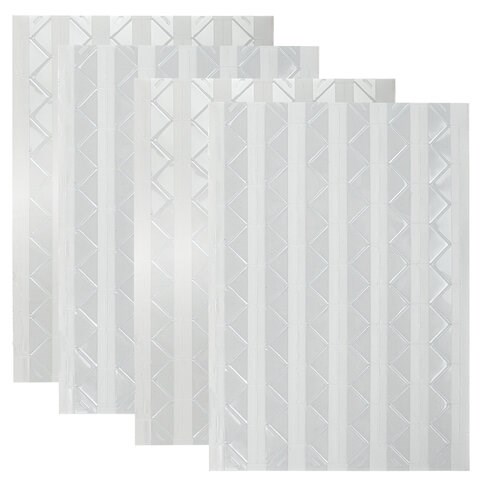 Набор состоит из 4х листов размером 10 см x 14,5см, на которых приклеено 408 уголков, по 102 уголка на листе.