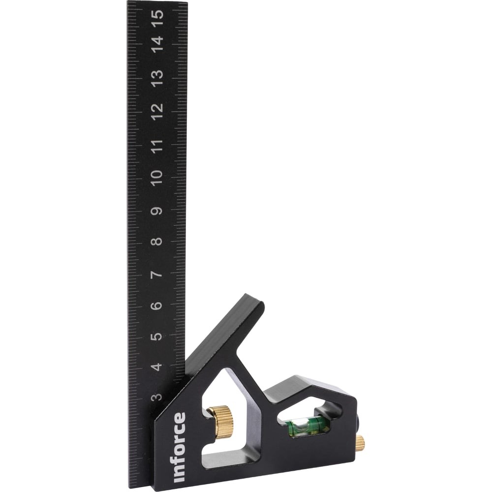 Угольник с уровнем Inforce 150 мм 06-11-77 используется при проведении разметочных работ. Благодаря наличию уровня можно определить отклонение поверхности по горизонтали или вертикали. Выполнен из прочной стали, поэтому не изгибается и позволяет сохранить высокую точность измерений.