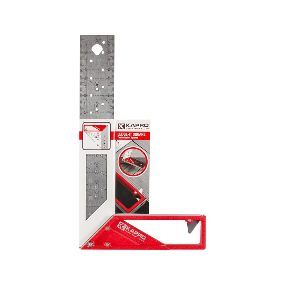 Угольник Kapro 353-25 представляет собой профессиональный измерительный инструмент. Сертифицированный угол 90° Литой алюминиевый держатель Измерительное полотно – нержавеющая сталь Держатель с тремя фрезерованными рабочими поверхностями Двусторонняя разметка угла 30° на держателе Выдвижная металлическая опора на держателе Гравированная разметка измерительного полотна, в том числе: - сантиметровая шкала - линии и отверстия 10°, 15°, 22.5°, 30°, 45°, 50° и 60° Маркировочный паз на держателе Отверстие для подвеса