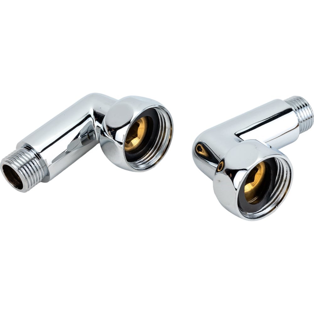 Уголок для полотенцесушителя SG г/ш 1"х1/2", хром, 2 шт 741SCH1004 - фитинг из хромированной латуни, предназначенный для сборки и монтажа полотенцесушителя. Резьбовой фитинг представляет собой муфту с накидной гайкой с одной стороны и штуцером с другой.