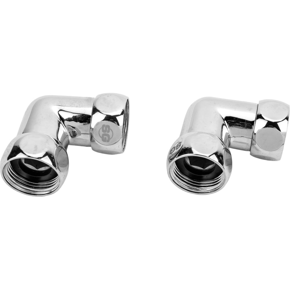 Уголок для полотенцесушителя SG  г/г 3/4"х3/4", хром, 2 шт 740SCH0505 - фитинг из хромированной латуни, предназначенный для сборки и монтажа полотенцесушителя. Резьбовой фитинг представляет собой муфту с накидной гайкой с двух сторон.