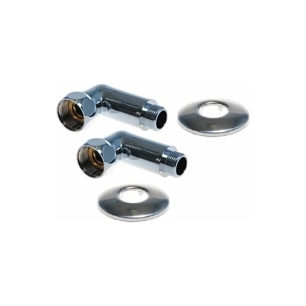 Уголок для полотенцесушителя SG г/ш 3/4"х1/2", хром, 2 шт 741SCH0504 - фитинг из хромированной латуни, предназначенный для сборки и монтажа полотенцесушителя. Резьбовой фитинг представляет собой муфту с накидной гайкой с одной стороны и штуцером с другой.