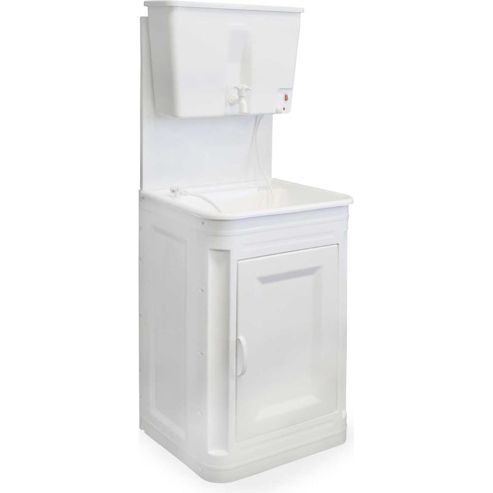 Умывальник садовый с водонагревателем на 22 литра с тумбой и раковиной ЭВБО-22 рекомендуется для установки в помещениях с отсутствием центральной водопроводной системы. Можно использовать в дачных домах, на садовых участках. Умывальник оборудован наливным бачком с электронагревателем. Вместительность бака составляет 22 л. Конструкция выполнена из пластика. Технические характеристики комплекта ЭлБЭТ ЭВБО-22: · Объем бака – 22 л. · Габариты комплекта в собранном виде (ВхШхГ) 134х50х44 см. · Габариты тумбы (ВхШхГ) 80х50х44 см. · Глубина раковины 12 см. · Высота от крана до дна раковины 37 см. · Длина провода 70 см. · Расстояния между отверстиями креплений – 24 см. · Вес товара – не более 10 кг. · Материал бака, тумбы, раковины – пластик. · Мощность - 1250 Вт. · ТЭН в умывальнике нагревает воду до 50°C за 35 мин. · Максимальный нагрев воды: 65°С. · Ручная регулировка температуры. · Цвет – белый. · Задняя панель комплекта армирована металлическим профилем 0,8 мм. · На крышке бака 2 вентиляционных отверстия для предотвращения скапливания пара. · Индикатор включения. · Габариты упаковки: 23х49х81 см.
