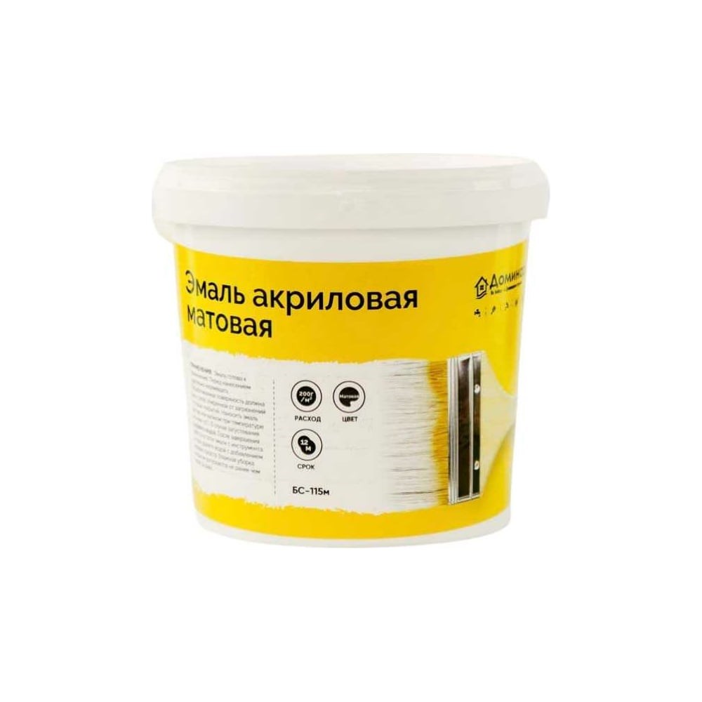 Эмаль универсальная акриловая Доминар БС 115м матовая 0.9 кг U18230 предназначена для окраски поверхностей фасадов зданий и сооружений, цокольных этажей, для внутренних отделочных работ стен и потолков, а также сухих помещений и помещений с повышенной влажностью (душевые, ванные комнаты, кухни, промышленные здания и сельскохозяйственные постройки). Идеально подходит для высококачественной отделки минеральных поверхностей (бетона, известково-цементных штукатурок, кирпича), дерева, ДВП, ДСП, гипсокартона и других пористых поверхностей. Допускается нанесение на поверхности, оклеенные рулонными отделочными материалами (обои под окраску – бумажные, виниловые на бумажной и флизелиновой основе, стеклообои).