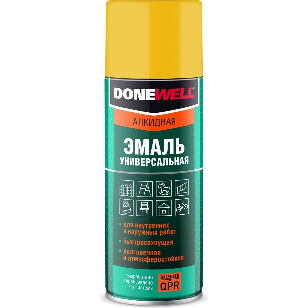 Универсальная эмаль DONEWELL желтая 520 мл DW-1013 предназначена для окраски предварительно загрунтованных металлических и деревянных поверхностей. Образует высокопрочное покрытие с хорошей укрывистостью, атмосферостойкостью, превосходной адгезией к окрашиваемой поверхности.Для наружных и внутренних работ.