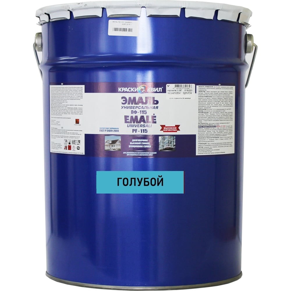 Эмаль Краски квил ПФ-115 Универсальная, голубая, бар. 20 кг 4607023391861 предназначена для окрашивания металлических, деревянных, кирпичных, гипсовых, бетонных и других поверхностей эксплуатируемых в атмосферных условиях и внутри помещений. Состав содержит алкидный лак, пигменты, наполнители, органический растворитель, сиккатив, функциональные добавки. Покрытие обладает высоким глянцем и твердостью, устойчиво к воздействию воды, бытовых моющих средств и технических масел. Двухслойное покрытие эмали, нанесенное на подготовленную загрунтованную поверхность, в умеренном и холодном климате сохраняет защитные свойства в течение 4-х лет, декоративные - в течение 1 года.