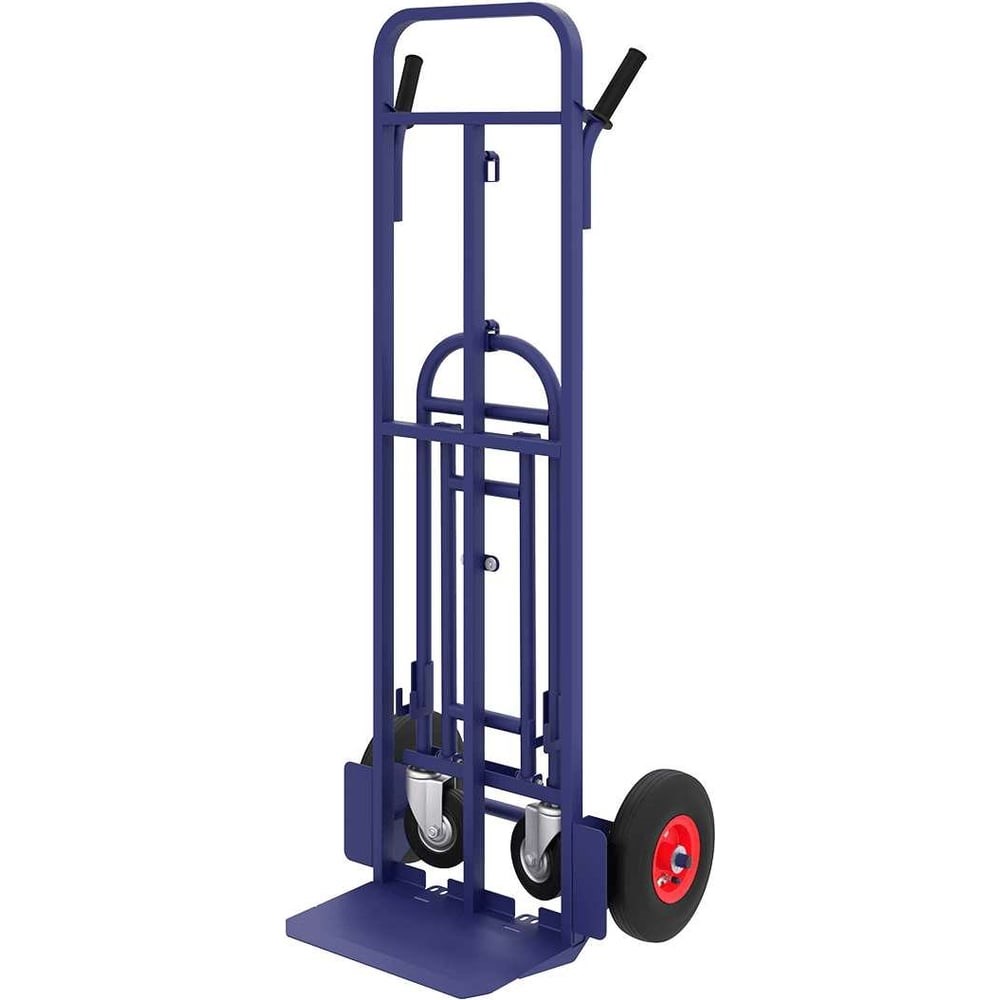 Тележка RUSKLAD грузовая универсальная ТГУ 200 с пневматическими d250мм и литыми d125мм колёсами ТГУ 200 пневмо позволяет быстро и удобно перевозить грузы весом до 200 кг. Тележка принимает несколько фиксированных положений: вертикальное, наклон под углом 45 градусов, а также горизонтальное. Прочная конструкция с каркасом из труб и двумя пневматическими колесами диаметром 250 мм и дополнительными опорными колесами Ø 125 мм, окрашена полимерной порошковой краской, что позволяет использовать приспособление на открытом воздухе даже при неблагоприятных погодных условиях. Тележка широко распространена для эксплуатации в профессиональной сфере - на складах, производственных предприятиях и т. д. Внимание! Тележка поставляется без откидной полки - приобретается отдельно.