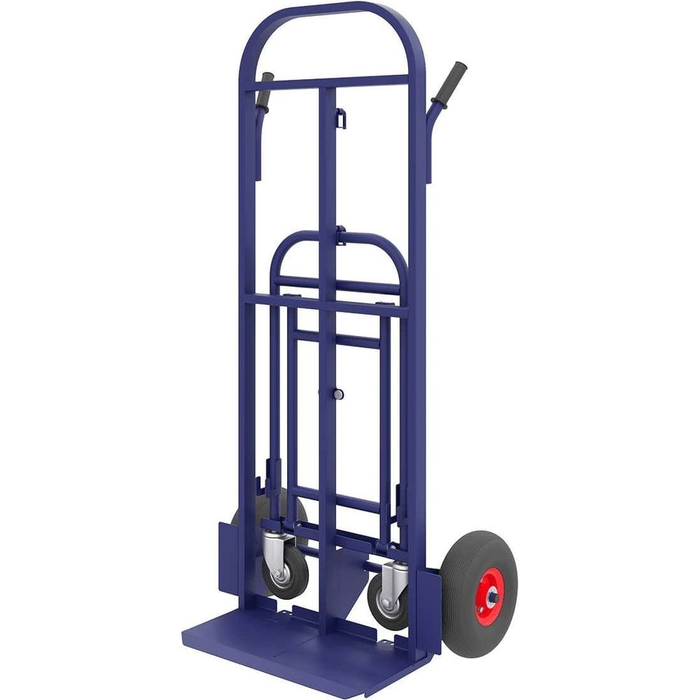 Тележка RUSKLAD грузовая универсальная ТГУ 300 с литыми колёсами ТГУ 300 литые позволяет быстро и удобно перевозить грузы весом до 300 кг. Тележка принимает несколько фиксированных положений: вертикальное, наклон под углом 45 градусов, а также горизонтальное. Прочная конструкция с каркасом из труб и двумя литыми колесами диаметром 250 мм и дополнительными опорными колесами Ø 125 мм, окрашена полимерной порошковой краской, что позволяет использовать приспособление на открытом воздухе даже при неблагоприятных погодных условиях. Тележка широко распространена для эксплуатации в профессиональной сфере - на складах, производственных предприятиях и т. д.