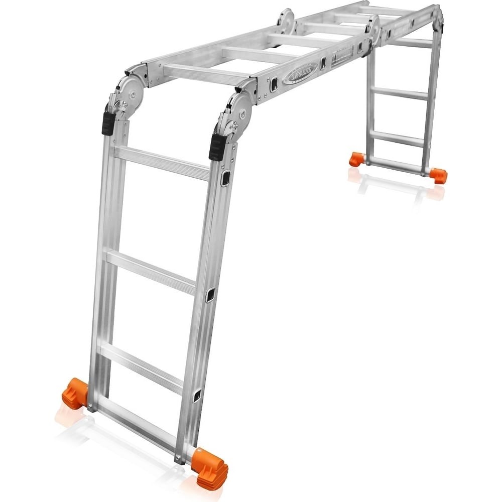Универсальная лестница Эйфель Классик 4х3 - это оборудование для выполнения работ на загородном участке или дома. Состоит из 4 частей, на каждой из которых по 3 ступени. Широкие траверсы оснащены нескользящими башмаками - это гарантирует устойчивость приспособления на любой поверхности. Шарниры позволяют фиксировать лестницу в нужном исполнении.За счет своей универсальности может использоваться как стремянка, как приставная лестница (в 2 вариантах) и как помост.В варианте “помост” необходимо использовать платформу (приобретается опционально).