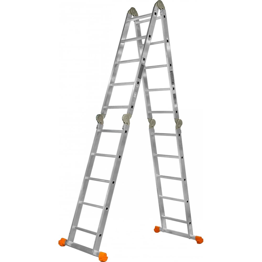 Универсальная лестница Эйфель Классик 4х5 - это оборудование для выполнения работ на загородном участке или дома. Состоит из 4 частей, на каждой из которых по 5 ступеней. Широкие траверсы оснащены нескользящими башмаками - это гарантирует устойчивость приспособления на любой поверхности. Шарниры позволяют фиксировать лестницу в нужном исполнении.За счет своей универсальности может использоваться как стремянка, как приставная лестница (в 2 вариантах) и как помост.В варианте “помост” необходимо использовать платформу (приобретается опционально).