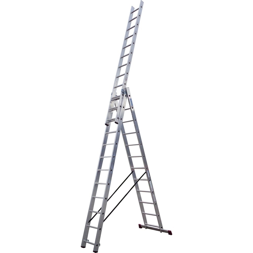 Универсальная лестница 3х12 Krause Corda 010445 профессиональной серии отличается прочностью, надежностью и долговечностью. Сборная конструкция делает её практичной. Можно использовать как приставную лестницу, как стремянку и как лестницу с выдвижной секцией. Противоскользящие наконечники обеспечивают безопасность и комфорт при использовании данной лестницы. Модель применяется в строительстве и ремонте. Предусмотрены страховочные ремни для предотвращения раскладывания лестницы. Нескользящие, полностью профилированные перекладины со всех сторон. Стальные, оцинкованные направляющие профили позволяют легко раздвигать лестницу. Части лестницы могут использоваться отдельно. Нескользящие опорные заглушки боковин и насадки траверсы. Безопасность эксплуатации и транспортировки обеспечивается крюками-защелками. Продукт сертифицирован в строгом соответствии с ГОСТ Р 58752-2019 и DIN EN-131 (редакции 2012 г.)