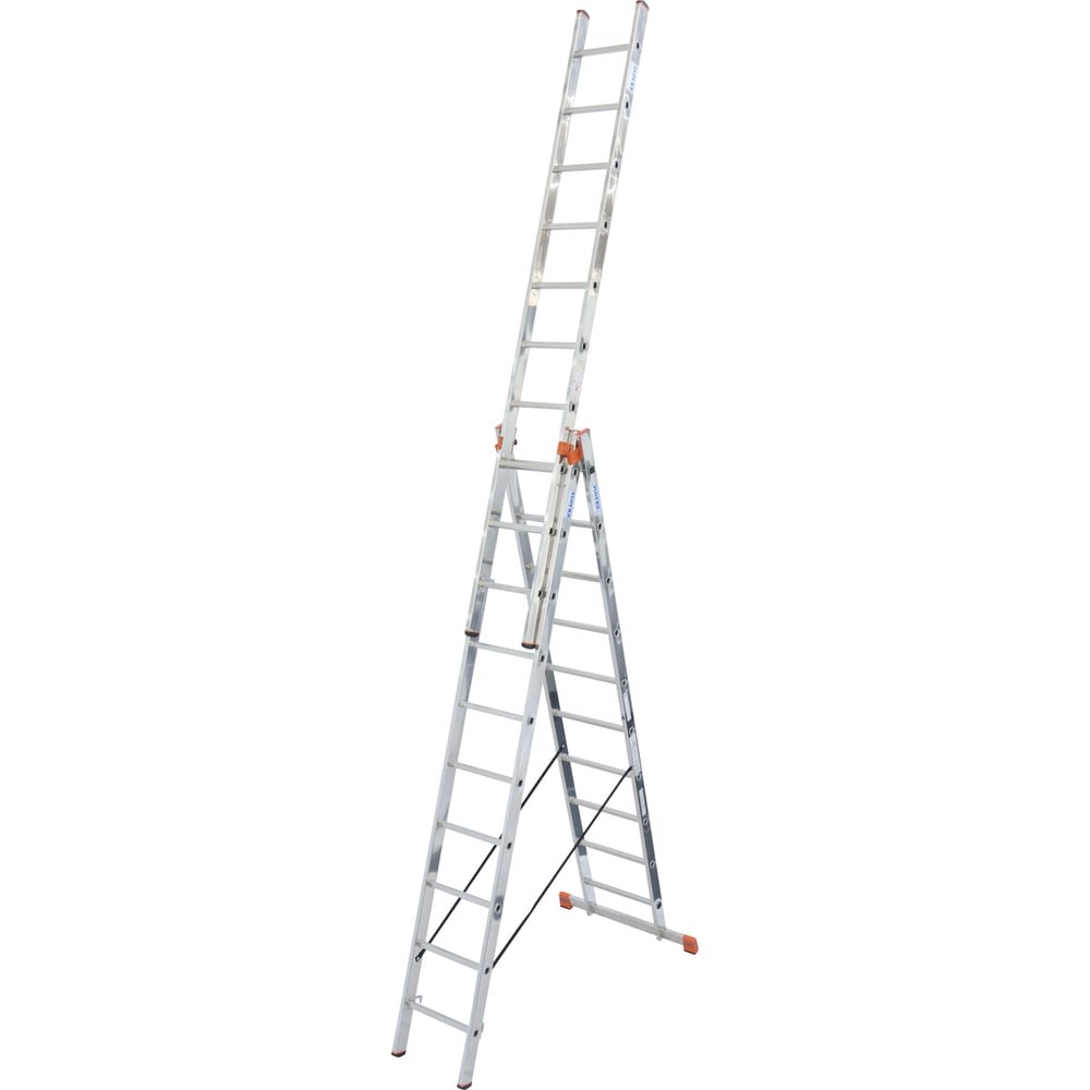 Универсальная лестница изтрёх частей Krause MONTO TRIBILO 3х10 перекладин 129680 превосходная модель для использования в области строительства, отделочных и садовых работ. Она легко трансформируется в раздвижную лестницу, приставную лестницу и стремянку. Материалом для ее изготовления служит прочный и качественный алюминиевый профиль. Самофиксирующаяся скоба для безопасной транспортировки (AutoSnap-System). Крепкие ремни, устойчивые к погодным воздействиям, предохраняют части лестниц от расхождения в положении стремянки. Продукт сертифицирован в строгом соответствии с ГОСТ Р 58752-2019 и DIN EN-131.
