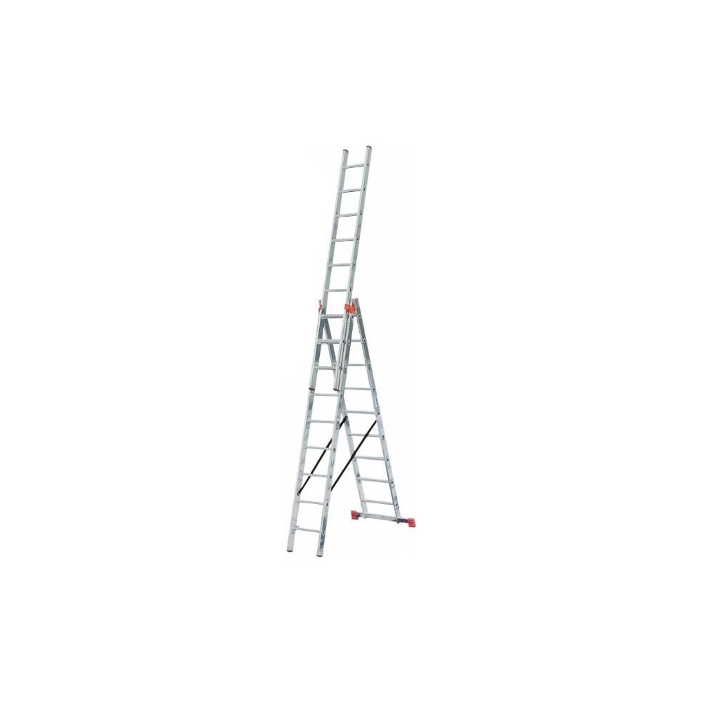 Универсальная лестница их трёх частей Krause MONTO TRIBILO 3х6 перекладин 129642 изготовлена из алюминия, состоит из трех секций. Оснащена прочными перекладинами, которые надежно закреплены в боковых профилях. Данная модель лестницы может использоваться как приставная, выдвижная или обычная стремянка.