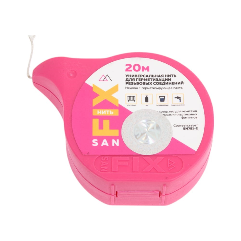 Нить универсальная для герметизации резьбовых соединений (нейлон + герметизирующая паста) SANFIX – нить нейлоновая, пропитанная герметизирующей пастой, универсальный герметик для соединений резьбового типа. Обеспечивает надежный монтаж металлических и полимерных фитингов. Нить SANFIX предназначена для уплотнения, герметизации мест соединения трубопроводов диаметром 3/8-2” из металла и полимера. Подходит для использования в отопительных системах, питьевого, технического водоснабжения, сжатого воздуха. Температура рабочей среды в системе, соединения которой герметизируются нитью, может составлять до +120С. Формируемое нитью уплотнение невосприимчиво к перепадам температур, вибрационным нагрузкам. Образованное соединение можно регулировать без замены нити.