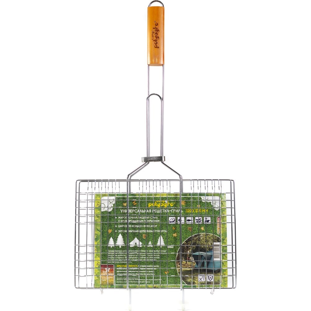 Универсальная хромированная решетка-гриль POLYAGRO Camp 32х22 см 8102244 - надежный и незаменимый помощник для приготовления пищи на открытом воздухе. Обладает преимуществами: Решетка изготовлена из жаропрочной хромированной стали; Специальная конструкция позволяет удобно закрепить решетку на мангале или жаровне; Прочное обжимное кольцо надежно фиксирует решетку; Специальная форма плетения прутьев придает обжаренным продуктам аппетитный вид.