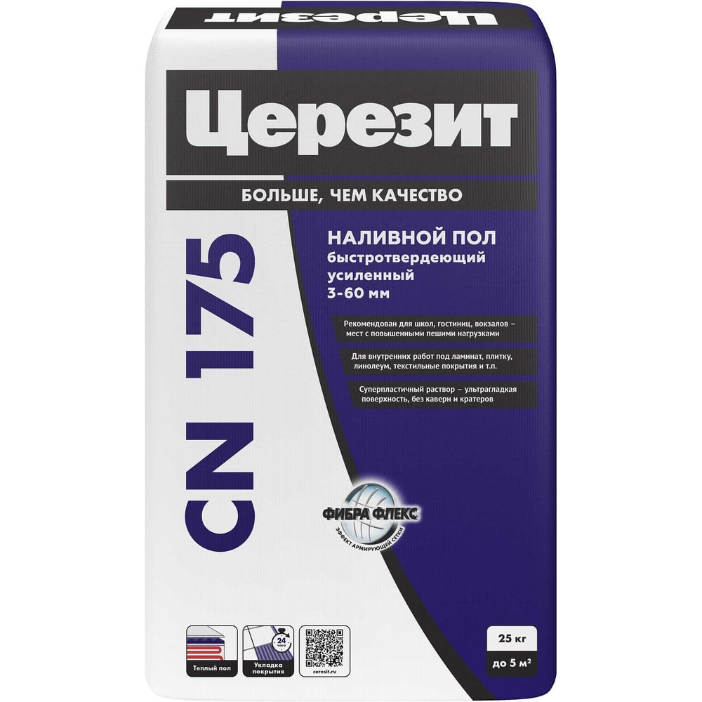 Универсальная самовыравнивающаяся смесь Церезит CN 175/25 25 кг 1535443 предназначена для выравнивания основания пола под укладку напольных покрытий, изготовления стяжек и ремонта дефектов оснований пола.Продукт используют для выравнивания бетонных, цементно-песчаных, ангидритных и гипсовых оснований пола под укладку керамических плиток, линолеума, ковролина, ламината и других напольных покрытий в помещениях с сухим и нормальным влажностными режимами, а также невысокими механическими нагрузками (жилых, бытовых, административных).Может применяться в ванных комнатах, санузлах и кухнях жилых помещений при условии устройства на его поверхности гидроизоляции из мастики CL 51 с водонепроницаемой лентой CL 152 по периметру.За один проход смесь можно наносить слоем толщиной от 3 до 60 мм.