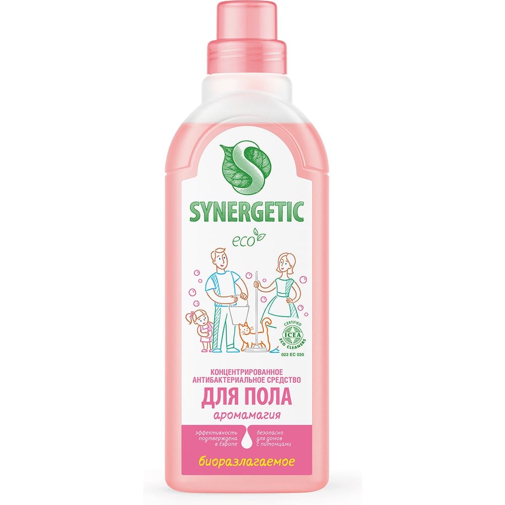 Универсальное средство для мытья поверхностей Synergetic Аромамагия 750 мл 4607971450207 – универсальное средство для ежедневной и генеральной уборки пола и других поверхностей: столов, стен, потолка. Уникальный комплекс растительных тензидов эффективно удаляет загрязнения и неприятные запахи даже в холодной воде. Комплекс зеленых хелатов предотвращает повторное оседание загрязнений на поверхности. Подходит для паркета, ламината, плитки, линолеума, металла, стекла, пластика, дерева. Международный экологический сертификат ICEA подтверждает биоразлагаемость, безопасность и эффективность средства. Не требует смывания, не оставляет разводов на поверхности. Подходит для уборки в детских комнатах и учреждениях. Безопасно для домов с питомцами. Содержит гипоаллергенную отдушку с натуральными эфирными маслами жасмина, герани, нероли и розы.