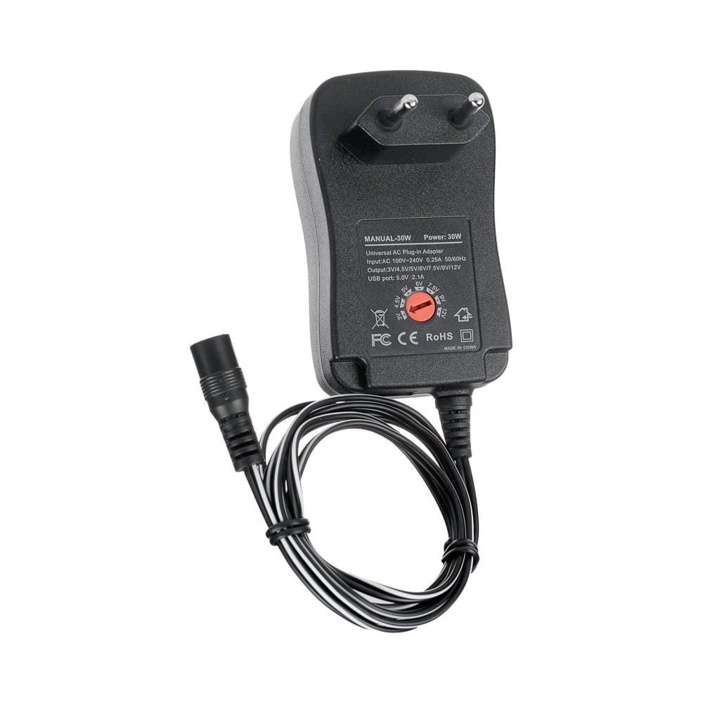 Вход: 100 В ~ 240 В 0.25A 50/60 ГцВыход: 3 В/4.5 В/5 В/6 В/7.5 В/9 В/12 ВВ комплекте коннекторы:2.5*0.7 мм3.0*1.1 мм3.5*1.35 мм4.0*1.7 мм5.0*2.1 мм5.5*2.5 мм