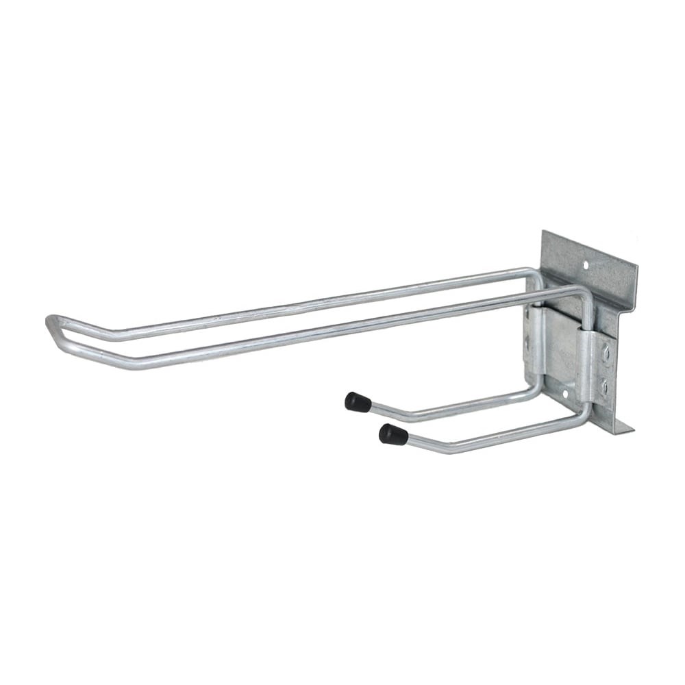 Универсальный двойной крюк LUCKY Guy L=270мм, 680 02 T07-01 0LG для установки на направляющую «LUCKY Guy» и обычную стену на дюбеля. С двумя крючками из оцинкованной проволоки ø6 мм по ГОСТ 3282-74 «Проволока стальная низкоуглеродистая общего назначения». Покрытие – горячий цинк толщиной 85 г/м². Длина верхнего спаренного крюка 270 мм, подгиб на 155°, его длина 34 мм, длина нижнего крюка 115 мм, угол подгиба и его длина, как в верхней части. Расстояние внутреннее между крюками 45 мм. Монтажная платформа: Ширина 90 мм, высота 83,5 мм, толщина 1,5 мм. Накладка толщиной 1,5 мм. Соединение (крепление) «холодное перфорирование». Возможность крепления на два отверстия ø5,1 мм к стене на саморезы. Декоративные пластиковые заглушки – «капли дождя». Можно использовать внутри помещений и на улице. Идеальное решение для организации системы хранения в гаражах, хоз. блоках, мастерских, дачах, садах, автосервисе, классах труда и творчества, гардеробных, лоджий, фермерских хозяйств. Максимальная нагрузка на изделие: 10 кг.