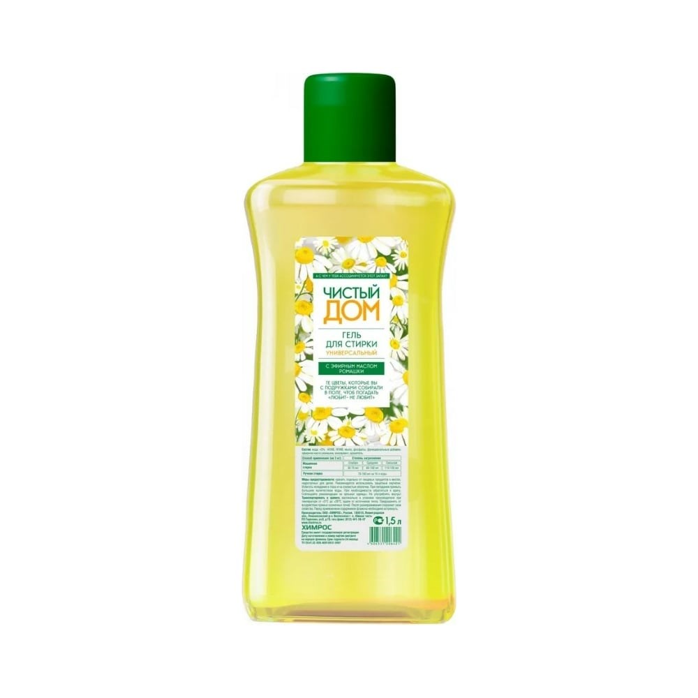 Универсальный гель для стирки Чистый дом ромашка, 1500 мл 552 с эфирным маслом ромашки, которые вы с подружками собирали в поле, чтоб погадать «любит-не любит». Для всех видов тканей. Для воды любой жесткости. Отстирывает даже стойкие пятна. Легко выполаскивается.