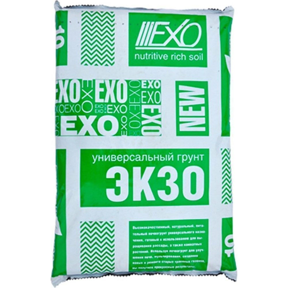Универсальный грунт ЭКЗО 10 л 1 – высококачественный, натуральный, питательный почвогрунт, готовый к использованию для выращивания рассады, а также комнатных растений. Используется для улучшения почв, мульчирования, создания новых и ремонта старых травяных газонов. Состав и питательная ценность (мг/л): натуральный верховой торф, нейтрализованный известью, с добавками комплексного минерального удобрения. N - 100-180, P2O5 - 135-255, К2О - 115-215, рH KCl- 5-6. Влажность - до 70 %.