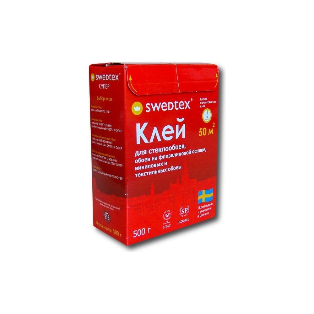Cухой универсальный клей Swedtex СУПЕР для стеклообоев, флизелиновых и других видов тяжёлых обоев, 500 г, до 65 кв.м PS-050 предназначен для наклеивания стеклообоев под покраску, малярного стеклохолста, фактурных обоев под покраску, текстильных покрытий. Не вступает в реакцию с основными типами красок, используемых для окрашивания обоев. Клей наносится прямо на стену. Позволяет корректировать обои при наклеивании. Экологически чистый, не содержит растворителя и вредных примесей. Безвреден для людей и домашних животных. Обладает высокими антисептическими свойствами: не позволяет развиваться грибку и плесени. Высыхает прозрачным и не оставляет пятен. Производится и упаковывается исключительно в Швеции.