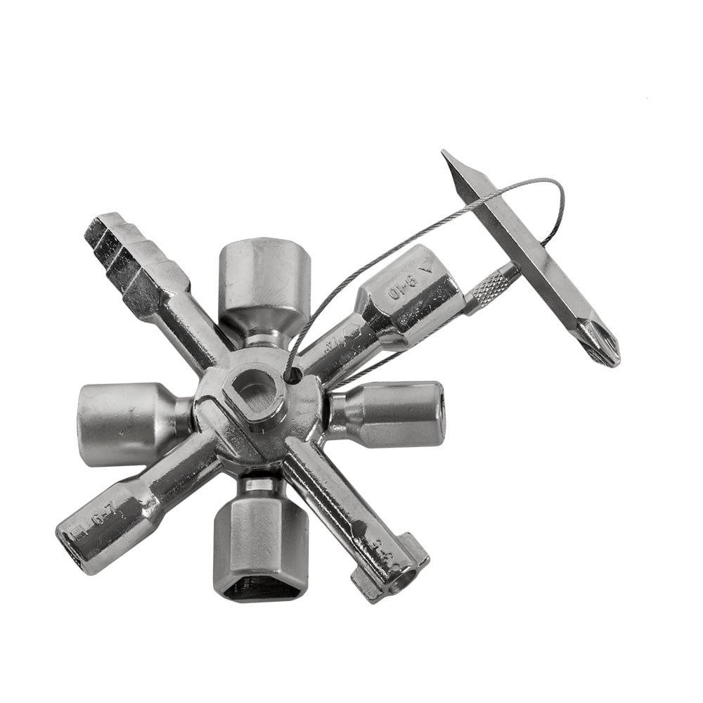 Универсальный ключ для электрошкафов КОБАЛЬТ 10 профилей 792-926 предназначен для использования в инженерных системах зданий и транспорта. Также применяется в сантехнических и электрических шкафах, системах вентиляции и кондиционирования воздуха. Включает в себя 10 видов шлица.