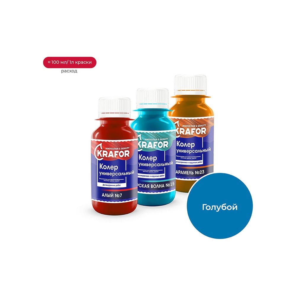 Предназначен для колеровки эмалей, водно-дисперсионных и масляных красок, сухих строительных смесей , растворов, побелочных и других составов. Применяется как внутри, так и снаружи помещений. Расход: в зависимости от типа колеруемого материала и насыщенности желаемого тона, ориентировочно 100 мл. колера на 1л. краски. Условия хранения: не менее 0°C в помещении при естественной влажности. Срок годности: 24 мес. Голубой Универсальный колер выпускается в 22 основных цветах. На практике можно получить неограниченное количество цветов и оттенков, так как все колера совместимы между собой. - материал легок в использовании; - не изменяет свойство краски; - высокое качество; - насыщенный цвет.