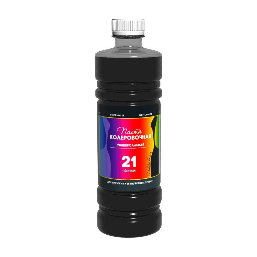 Универсальный колер White House (черный; 450 мл) 15652Колеровочная паста WHITE HOUSE - универсальный колер для краски для наружных и внутренних работ. Колеровочная паста подходит для тонирования масел и олифы, пропиток и аквалазурей, пигмента для гипса, известковых и цементных растворов, сухих строительных смесей, побелки, затирок и других материалов. Колер WHITE HOUSE универсален - его можно добавлять в любые строительные растворы: воднодисперсионные и латексные, титановые и алкидные, акриловые и силиконовые, масляные, ПФ и НЦ. Колеровочная паста светостойкая - пигменты не выгорают и не выцветают длительное время. Окрашенная поверхность получается однородной, тон глубокий. Колер для краски выпускается в практичной фасовке 100мл и 450мл. Цвета можно смешивать между собой для создания новых оттенков колера для акриловой краски или колера для эпоксидной смолы. Оттенок колера краски для стен в готовом растворе может незначительно меняться в зависимости от типа используемого строительного материала (эмаль масляная краска, водно-дисперсионная краска лак и т.д.). Для получения ярких насыщенных цветов добавляйте колер для акриловой краски в прозрачную краску "база С", она идеальна для колеровки. Если добавите коллер в белую краску, то Вы получите потрясающие пастельные оттенки.