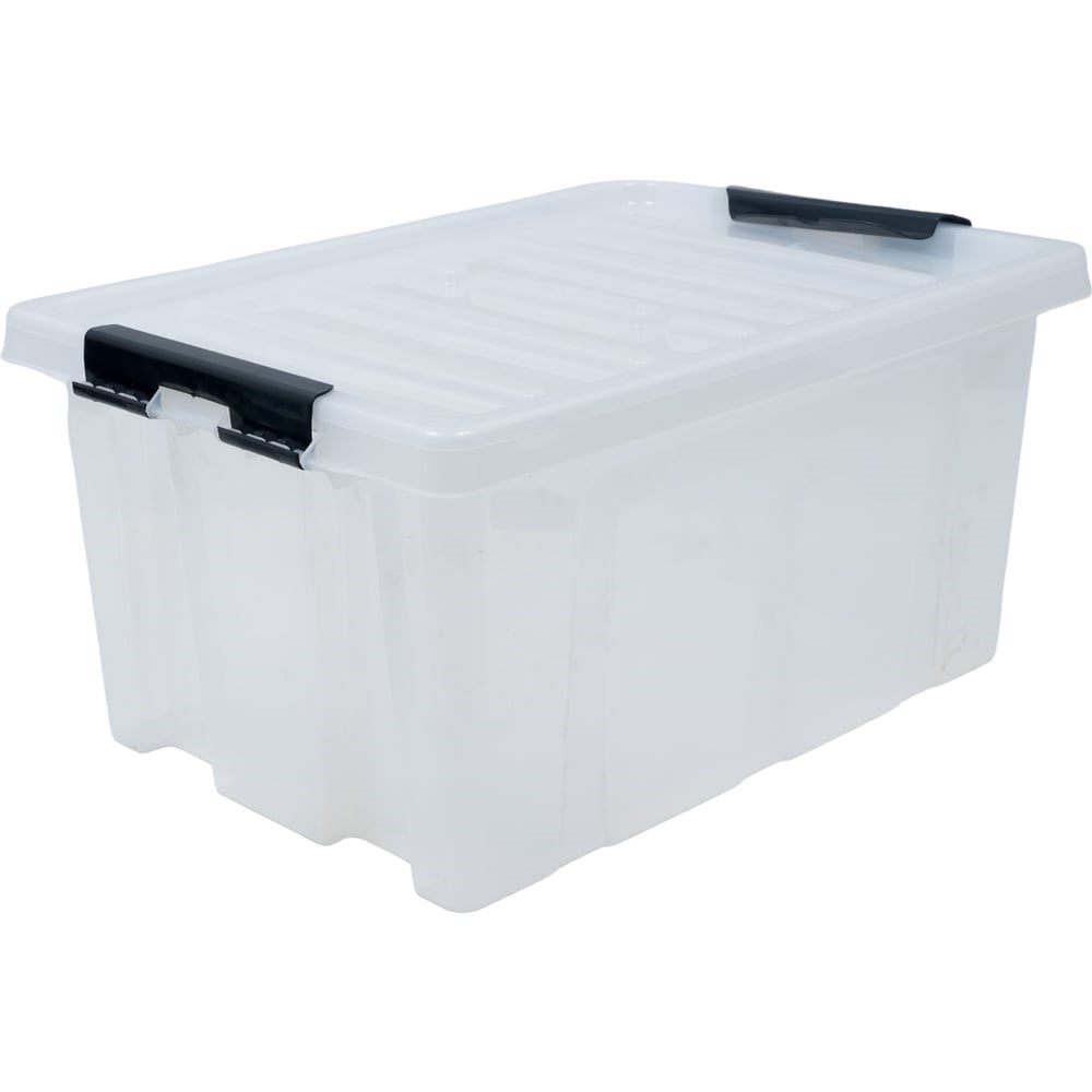 Ящик выполнен из высококачественного пластика, имеет повышенную прочность за счет дополнительных ребер жесткости, снабжен двумя клипсами по бокам, которые обеспечивают надежность хранения вещей и защиту от пыли, грязи, запахов. Предназначен для хранения одежды, обуви, игрушек, строительных инструментов и различных хозяйственных вещей. Ящики с клипсами идеальные помощники при переезде.Для компактного хранения ящики можно штабелировать друг на друга, собрав при этом систему хранения.