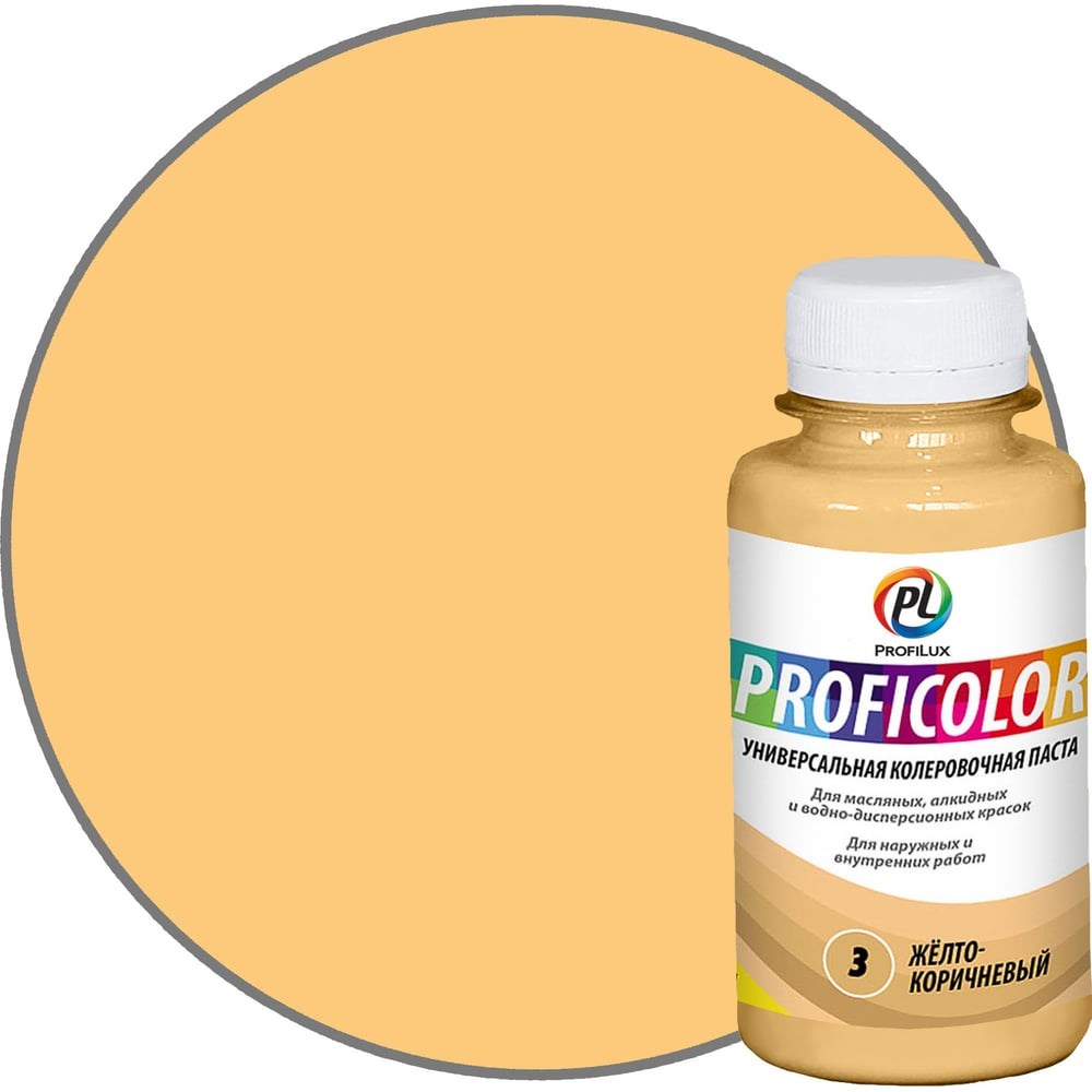 Универсальный краситель Profilux PROFICOLOR № 3, 100 мл Н0000006393 используется для колеровки красок, растворов известки и цемента, затирок для швов. Продукт экологически безопасен и не оказывает воздействие на свойства составов после замешивания. Паста показывает устойчивость к влиянию пониженных температур и атмосферных явлений.
