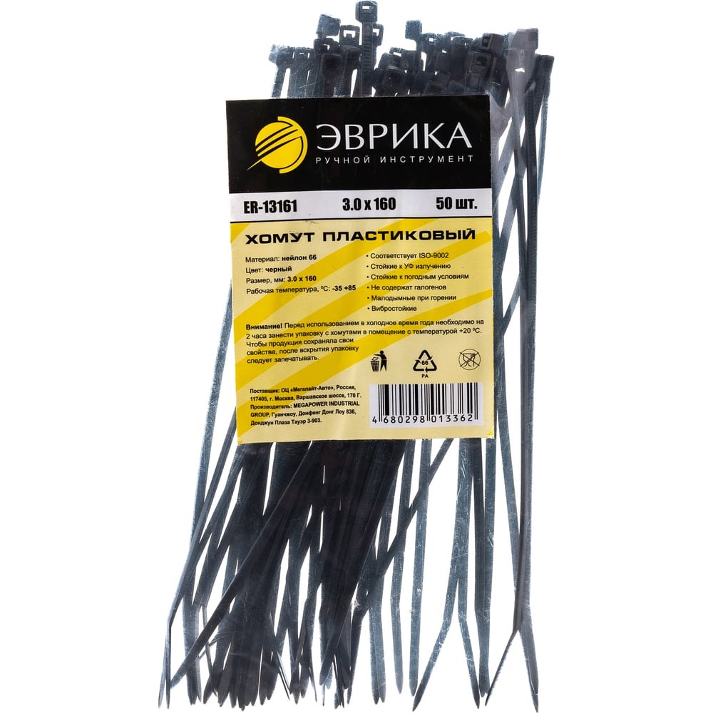 Пластиковый хомут черный 3.0x160мм универсальный 50шт Эврика ER-13161 956500