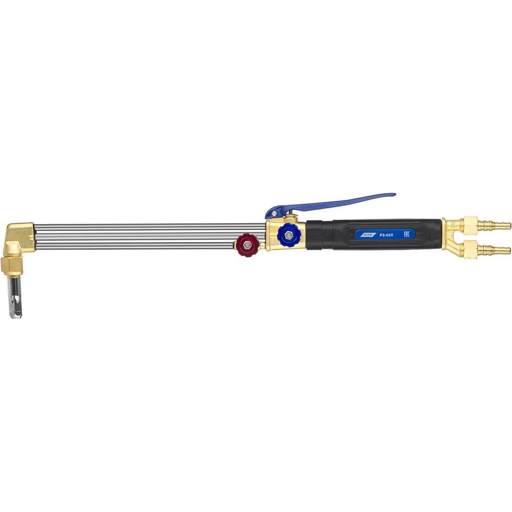Р3-01К – это универсальный резак внутриголовочного смешения газов, который используется для ручной кислородной резки листового и сортового металлопроката из низкоуглеродистых сталей толщиной до 150 мм. Резак обладает повышенной надежностью конструкции, которая достигается за счет штампованных латунных элементов резака. Отличительная особенность резака Р3-01К – клапан кислорода режущего (КР), который располагается сверху, что облегчает эксплуатацию резака. Резак может работать на пропане и ацетилене. Выбор газа зависит от установленных неразборных мундштуков. Мундштуки имеют два запорных пояска, которые обеспечивают смешение газов непосредственно в головке резака, обеспечивая безопасное использование. Резак поставляется в сборе с пропановым мундштуком №2П. Давление газа на входе и расход зависит от установленного мундштука. В руководстве по эксплуатации указаны ориентировочные данные. Маркировка пропановых/ацетиленовых мундштуков и толщина разрезаемого металла: №1П/1А (2–25 мм) №2П/2А (25–50 мм) №3П/3А (50–100 мм) №4П (100–150 мм)
