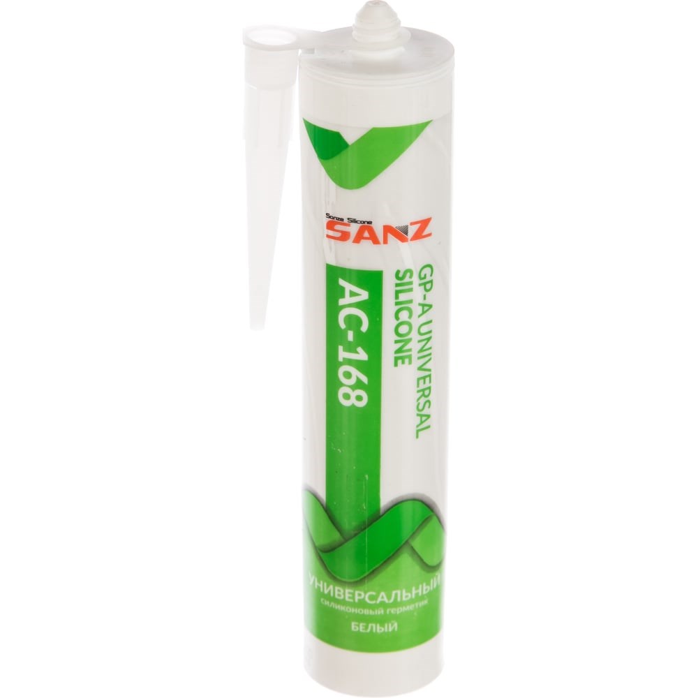 Универсальный силиконовый герметик SANZ АС-168 белый, 280 мл. 168-7394-W используют во время строительных и ремонтных работ внутри помещений с повышенной влажностью. Герметик подходит для изоляции оконных и дверных проемов, заполнения швов, стыков и трещин. Продукт имеет хорошую адгезию к стеклянным, металлическим, пластиковым, бетонным и деревянным поверхностям. Входящие в состав компоненты образуют эластичное клеевое соединение с устойчивостью к ультрафиолету и атмосферным осадкам.