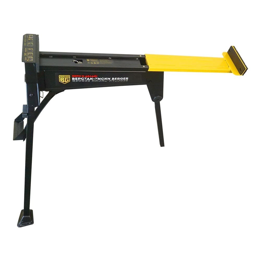 Универсальный складной верстак Berger BG с быстрозажимными тисками BG1298 имеет компактное исполнение в виде сборной конструкции, не требует специального технического обслуживания. Подходит для фиксации материалов и выполнения различных операций. В сложенном виде верстак легко поместится в небольшом багажнике автомобиля, отличается безопасностью в эксплуатации и высокой надёжностью. Оборудование обладает рядом технологических преимуществ: ножной привод зажима с рычажным усиливающим механизмом быстрозажимная подвижная часть с губками фиксатор блокировки храпового механизма увеличение площади захвата за счет реверса подвижной части складная, портативная конструкция, занимает мало места при хранении и мобильна при транспортировки быстрая трансформация оборудования в рабочее/транспортное положение фиксация передних опорных стоек в рабочем положении полуавтоматическими защелками удобный круговой доступ при работе возможность дополнительной фиксации передних опорных стоек Отдельно продаются дополнительные сменные губки: Стальные губки BG1299 - для работ с бревнами и поленьями Слесарные губки из высокопрочного чугуна BG1300 - для работ с металлом