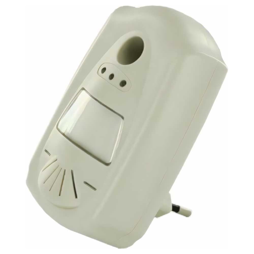 Универсальный стационарный ультразвуковой отпугиватель 4 в 1 ЭКОСНАЙПЕР UP-116T экономичен в потреблении энергии, безопасен для людей, домашних животных и окружающей среды. Прибор является эффективным средством борьбы с мышами, тараканами, муравьями, и другими паразитами. Отпугиватель безопасно изгоняет паразитов из Вашего жилища, не создает электромагнитных помех, не вредит здоровью человека. Может применяться в домах, магазинах, кафе, ресторанах, отелях, хранилищах, на складах и т.п. Использует 2 технологии борьбы с паразитами: ультразвуковую и магниторезонансную. Магниторезонансная технология генерирует электромагнитные волны низкой частоты, которые воздействуют на нервную систему паразитов и вынуждают их покинуть помещение. Ультразвуковые волны излучаются с плавающей частотой, что предотвращает привыкание у паразитов. В прибор встроены очиститель-ионизатор воздуха, который убивает бактерии, и ночник, который позволит Вам легко ориентироваться в темном помещении. Встроенные индикаторы работы. Звуковое давление: 130 дБ. Площадь защищаемого помещения: до 300 кв.м. Устройство не использует в работе химических реагентов и ядов. Питание: от сети 220 В (вставляется в обычную розетку). Размеры: 71х110х50 мм. Потребление 5 Вт.