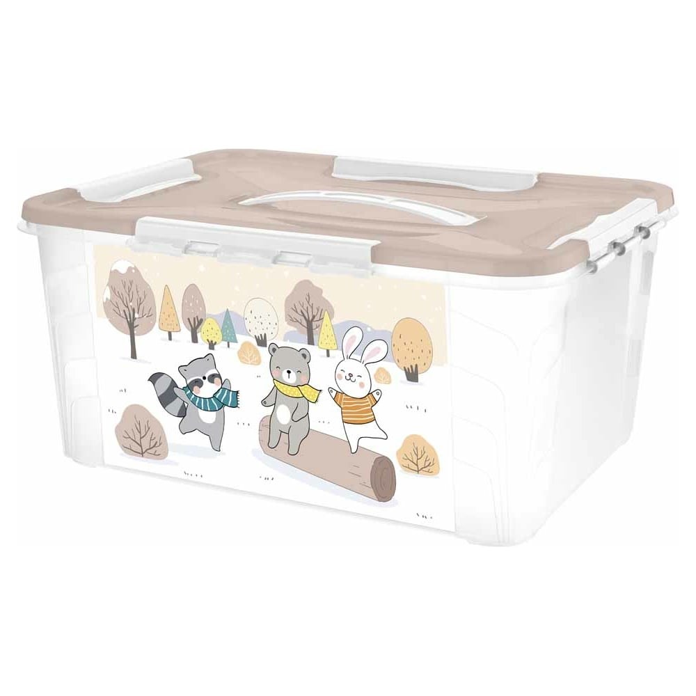 Универсальный ящик с декором Пластишка 390x290x180 мм, 15.3 л, белый 431325116 предназначен для хранения предметов детского творчества или хобби и многого другого. Особая крышка может открываться откидным способом, а может сниматься полностью. Крышка плотно фиксируется с помощью четырех замков по периметру. Специальная выемка на крышке позволяет спрятать ручку для штабелирования коробок. Благодаря удобной прочной ручке коробку можно переносить с места на место. Декор нанесен с помощью технологии IML: он не стирается и не повреждается в процессе использования. Ящик изготовлен из безопасного полипропилена, не имеет острых углов.