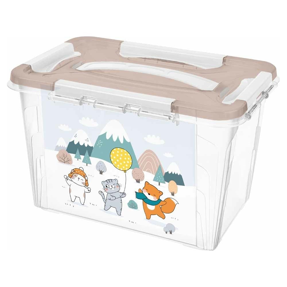 Универсальный ящик с декором Пластишка 290x190x180 мм, 6.65 л, белый 431325016 предназначен для хранения предметов детского творчества или хобби и многого другого. Особая крышка может открываться откидным способом, а может сниматься полностью. Крышка плотно фиксируется с помощью четырех замков по периметру. Специальная выемка на крышке позволяет спрятать ручку для штабелирования коробок. Благодаря удобной прочной ручке коробку можно переносить с места на место. Декор нанесен с помощью технологии IML: он не стирается и не повреждается в процессе использования. Ящик изготовлен из безопасного полипропилена, не имеет острых углов.