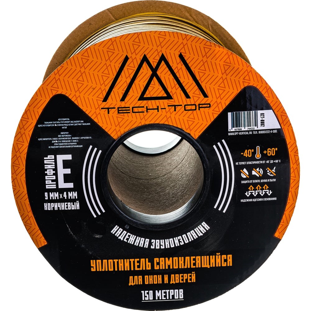 Уплотнитель (коричневый, E 9х4 мм, бухта 150 м) TECH-TOP 027-0002 53928
