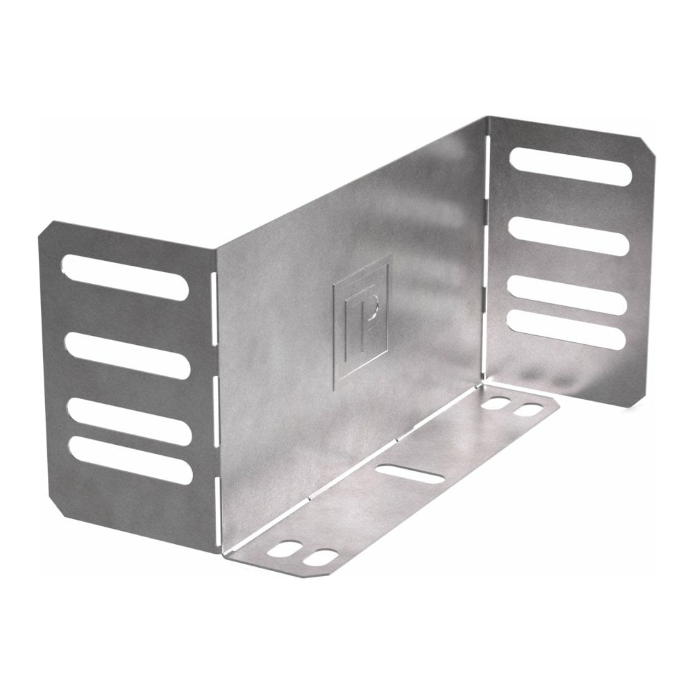 Аксессуары изготовленные из стали с защитным покрытием по методу Сендзимира – это изделия, на которых защитное цинковое покрытие было нанесено на листовую сталь перед изготовлением. Толщина защитного покрытия варьируется от 10 до 22 мкм. Климатическое исполнение изделий УХЛ2, что предусматривают эксплуатацию в помещении и под навесом, при температуре эксплуатации от -80 до +150°С. Обеспечивает фиксированный переход с одной ширины на другую при формировании кабеленесущей линии из лотков с разной шириной основания.