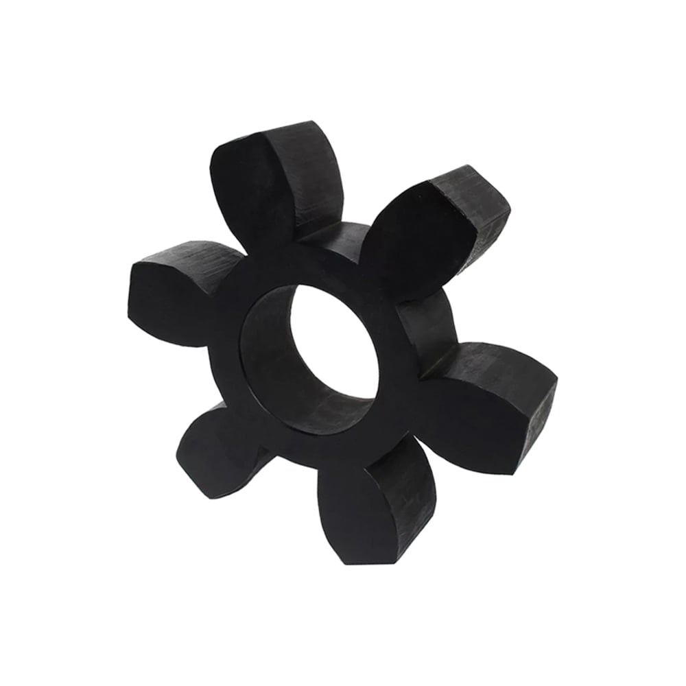 Упругий элемент типа паук черный предназначен для осуществления упругой связи между соединительными муфтами кулачкового типа. Конструкция эластичного элемента имеет 6 лучей. Изготовлен из полиуретана черного цвета. Ему соответствует твердость 94 Shore A.