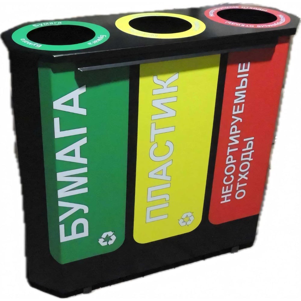 Урнапредназначена для раздельного сбора мусора. Стальные контейнеры с полимерным покрытием, прочные и не подверженные коррозии, эффективно препятствуют контакту отходов с окружающей средой. В качестве дополнительной меры предосторожности урна комплектуются внутренними емкостями по 47 л. Осуществляется раздельный сбор следующих видов отходов: Пластика Стекла Бумаги Откидная крышка позволяет легко выгружать мусор. Яркие, разноцветные контейнеры, помимо своей основной функции, служат элементом городского декора. Внимание! Наклейки входят в комплект. Наклейки не клеим!!!