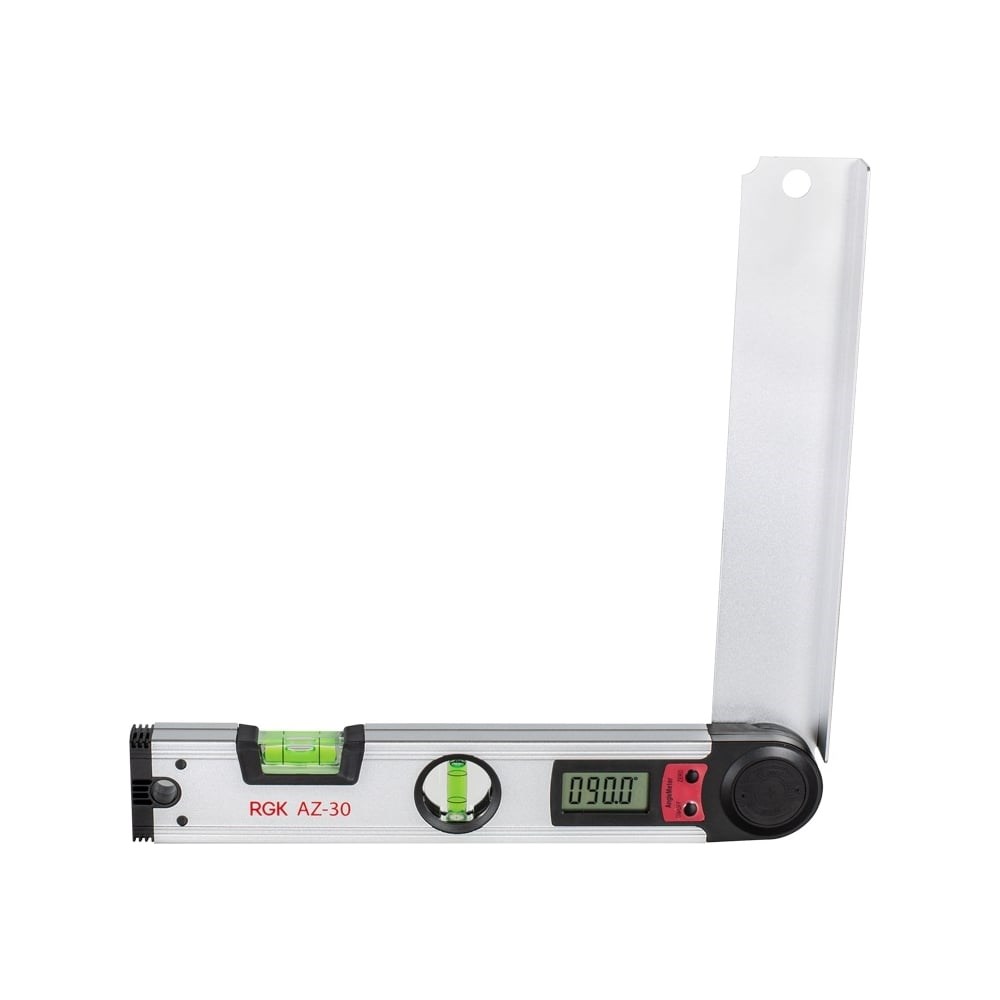 Угломер RGK AZ-30 используется для измерения углов. Горизонтальные и вертикальные пузырьковые уровни способствуют точному измерению углов. Автоматическое отключение прибора спустя пять минут бездействия экономит заряд батареи. При помощи двух кнопок на корпусе легко управлять моделью.