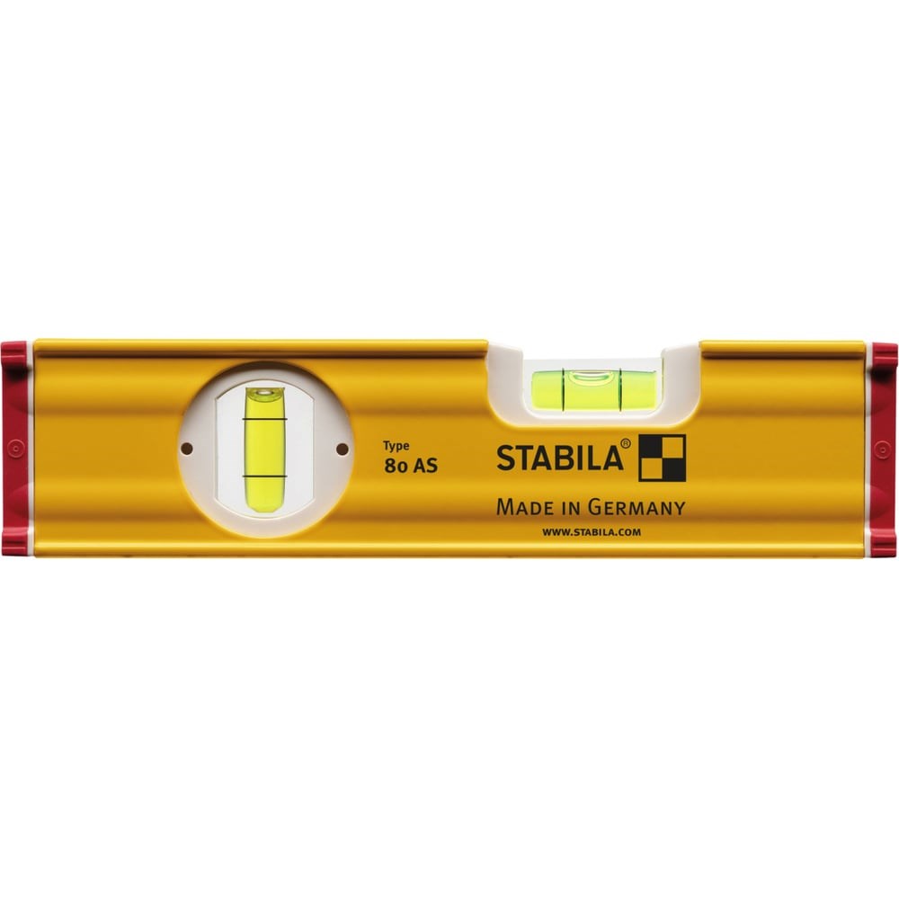 Уровень тип 80АS STABILA 20см 1верт., 1гориз.,точность 0,5мм/м 19565 выполнен из прямоугольного профиля, усиленного ребрами жесткости. Инструмент отличается высокой точностью и долгим сроком службы. Уровень предназначен для эксплуатации при выполнении строительных и ремонтных работ, подходит для использования в сфере ландшафтного дизайна. Дополнительные характеристики: Точность измерения в нормальном положении ± 0,5 мм/м Точность измерения в перевернутом положении (над головой) — ± 0,75 мм/м