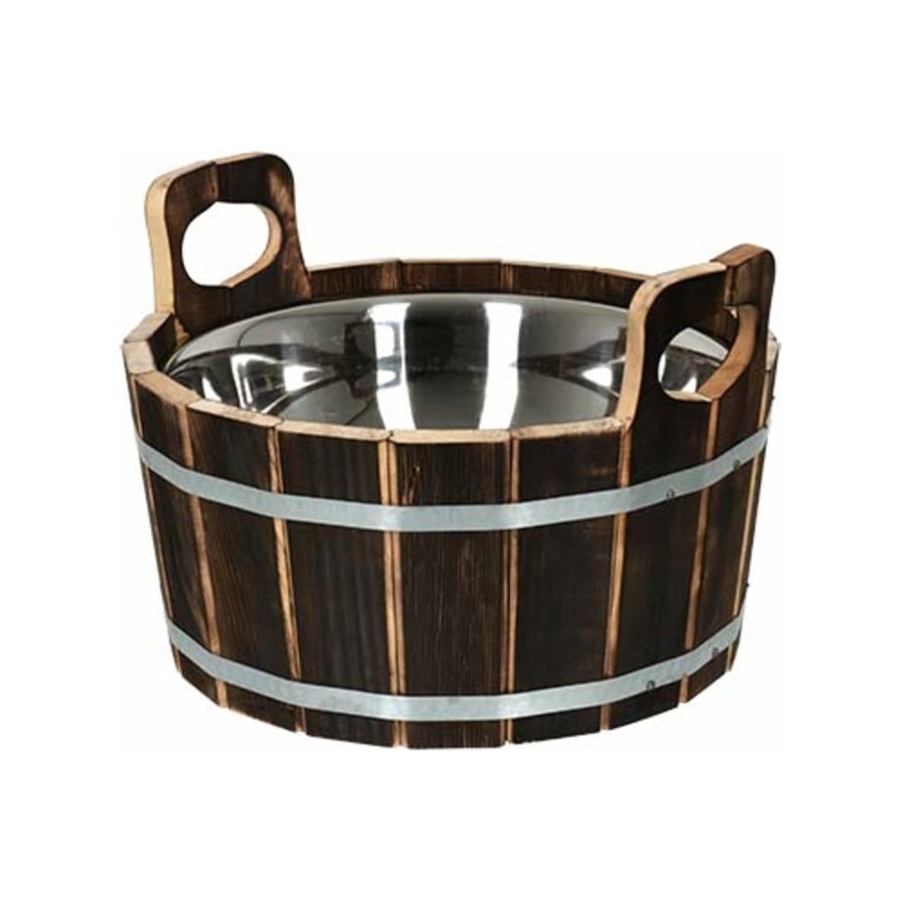 Ушат "шайка" Банные штучки 10 л, с нержавеющей вставкой, обожжённая липа 33238 предназначен для использования в бане и сауне. Бондарные изделия выполненные из липы, прослужат многие годы. Древесина липы является основным материалом при изготовлении бондарных изделий, поскольку она не только обладает уникальными целебными свойствами, но и способна сохранять комфортную температуру в самой жаркой парной.